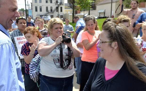 В обязанности служащей Ким Дэвис из Кентукки входила стандартная процедура выдачи свидетельств о заключении брака, но вера заставила женщину пойти против юридической системы США, т. к. решение Верховного суда о легализации однополых браков противоречит ее христианским убеждениям.